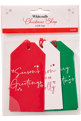 Whitcoulls Christmas Shop Gift Tags Script Cream, Red & Green Pack of 6