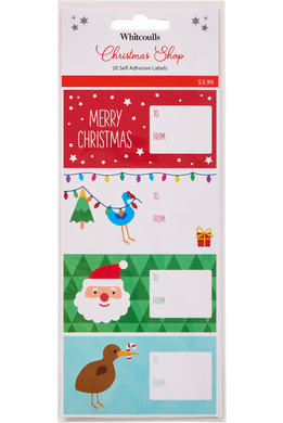 Whitcoulls Christmas Shop Gift Labels Bright Fun Pack of 20