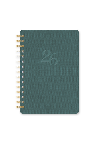 Marrying classic design with modern sensibility, the Agatha Teal Planner is a sophisticated A5 accessory for those who love staying organized in style. With its elegant teal vegan PU softcover and textured finish, this planner is as beautiful as it is practical perfect for bringing structure and calm to your busy life. Covering 17 months (August 2025 to December 2026), this thoughtfully designed planner features both month-per-spread and week-per-spread views, allowing for detailed day-to-day planning alongside big-picture overviews. Whether you're tracking appointments, setting goals, or managing your budget, the easy-to-use budget and goal trackers make it simple to stay focused and in control. The exposed wire-o binding ensures the planner lays flat for ease of use, while tabbed monthly dividers keep navigation effortless. A snap-in bookmark helps you mark your place quickly, and a double-sided storage pocket offers space for notes, receipts, or loose papers. Sized just right for everyday use, it measures approximately 146 mm x 210 mm, making it ideal for slipping into your bag while offering plenty of space for structured planning. Minimal yet meticulous, the Agatha Teal Planner is your ultimate planning companion blending modern functionality with timeless design.