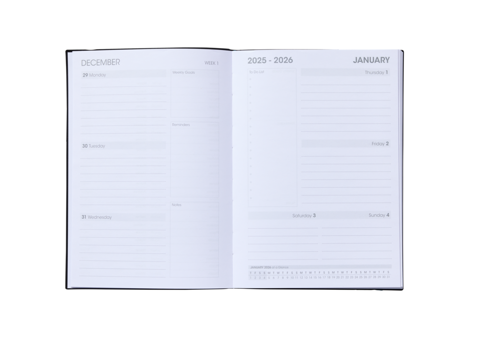 This 2026 fashionable A5 diary has a front textured PU cover with exclusive design in a week-to-view format. Diary includes New Zealand holidays in the contents section.