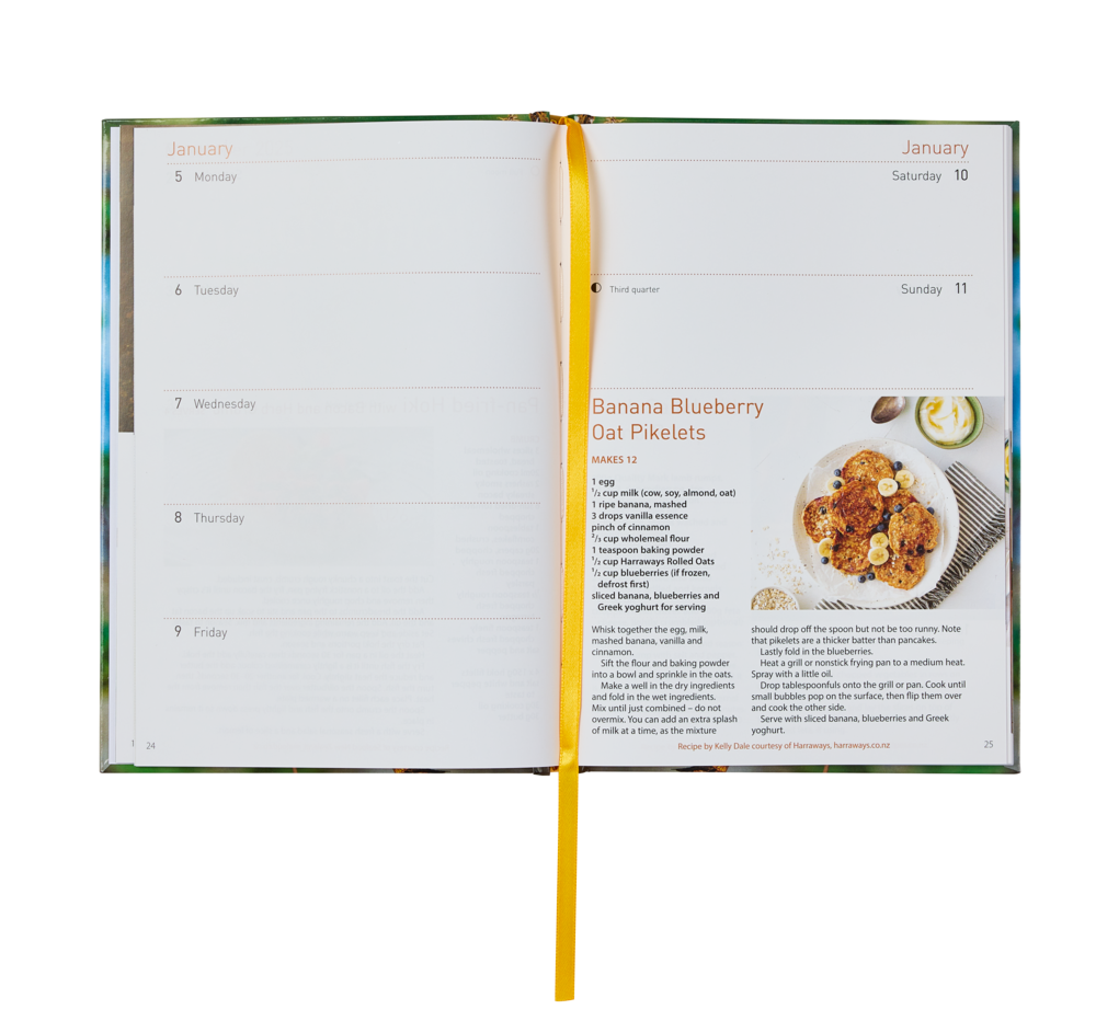 The 2026 New Zealand Home A5 diary is hard covered, full colour, with a ribbon marker, and a double-page spread per week. There are 54 new recipes (one per week plus 2 in slices feature), catering for a range of dietary requirements. Features this year include exercises to do in bed, no-bake slices, growing bulbs indoors. Of course there is all the usual diary information you expect: calendars, public holidays, school terms, sunrise and sunset times, phases of the moon, measures and conversions, as well as helpful information on first aid and CPR, an emergency checklist, and space for your own notes.