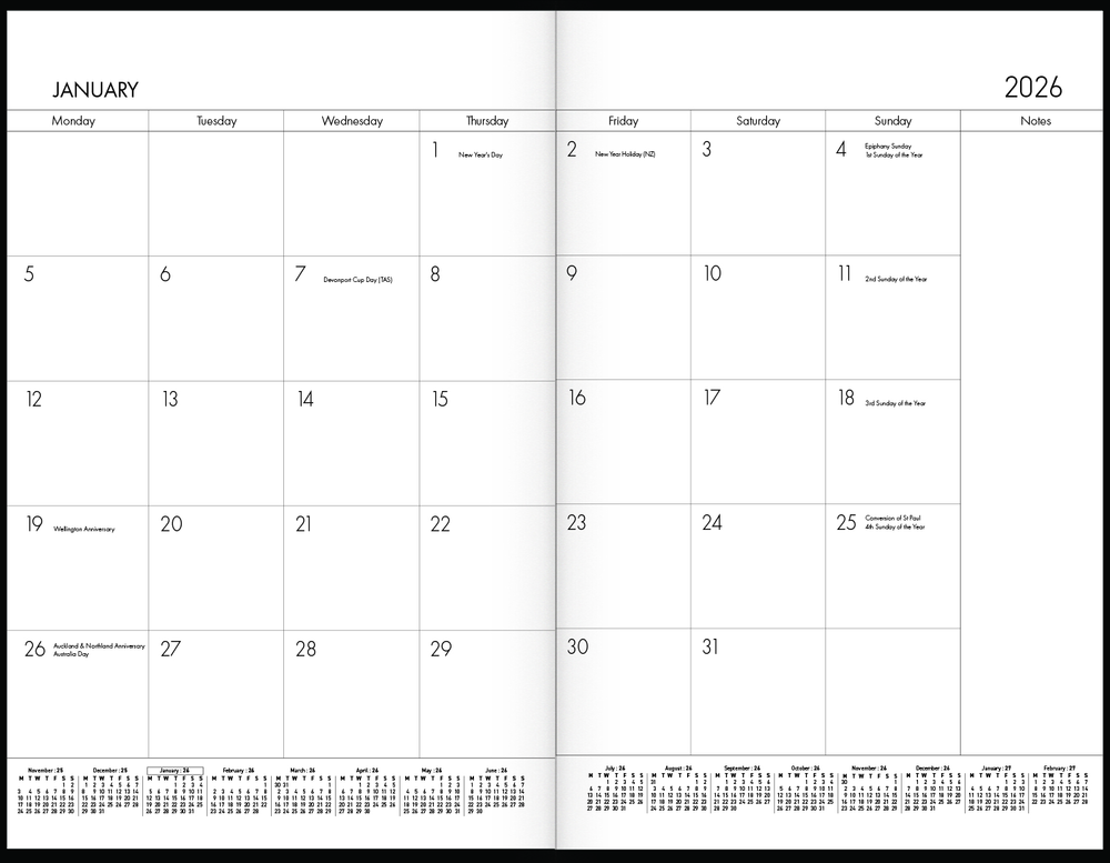 The 2024 Collins A4 Month-to-View Planner is available in assorted colours (black, red, navy, green) and features one month per opening. Planner is stapled with a flexible, matt, laminated cover and is FSC certified. Please note this is an assorted item, you will receive a randomly selected design/colour for online orders.