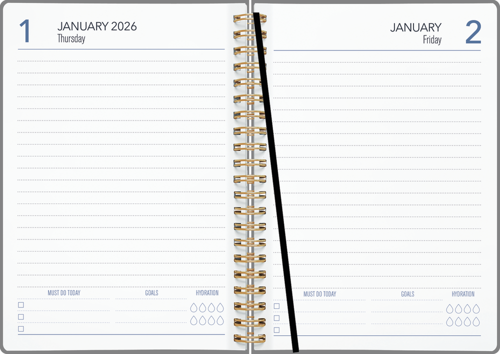 The 2026 Collins A5 day-per-page diary features a hummingbird design and is size A5. Diary is wire bound and includes an elastic band closure. Diary is FSC certified.