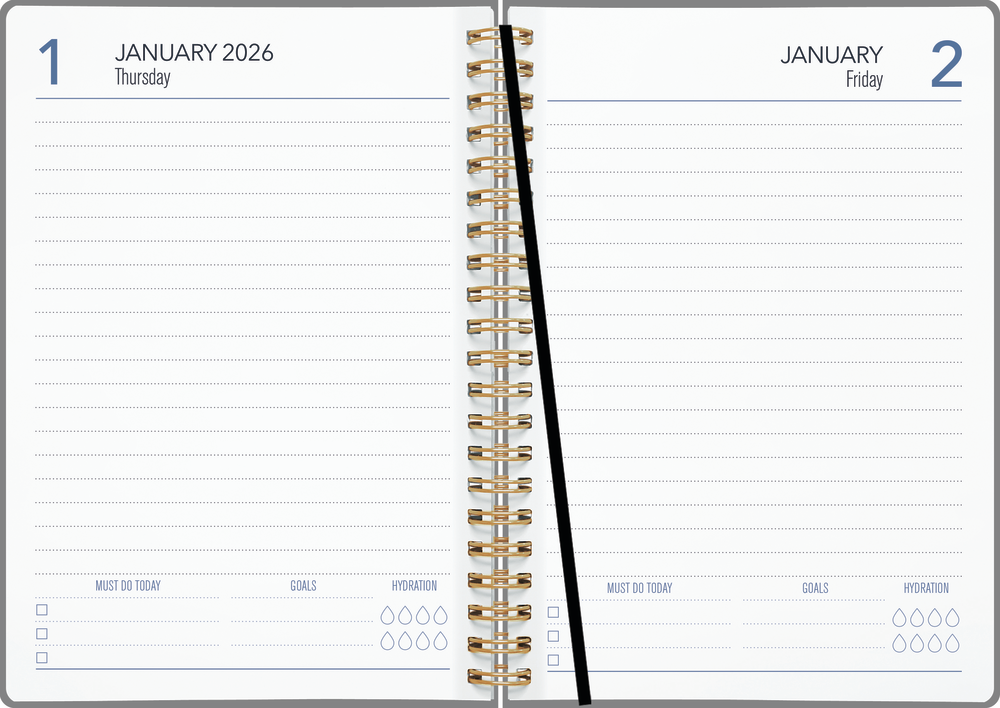The 2026 Collins A5 day-per-page diary features a toadstool design and is size A5. Diary is wire bound and includes an elastic band closure. Diary is FSC certified.