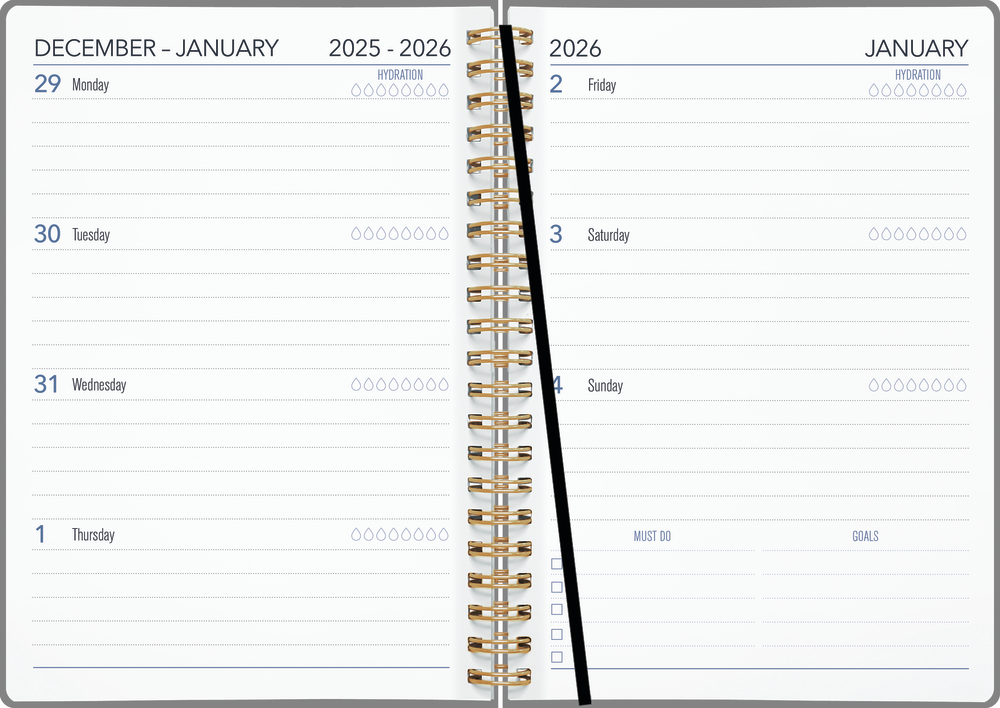 The 2026 Collins A5 week-to-view diary features a piwakawaka inspired design on the cover and is size A5. Diary is wire bound and includes an elastic band closure. Diary is FSC certified.
