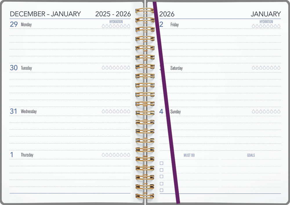 The 2026 Collins A5 week-to-view diary features a metallic foiling with a protea flower design and is size A5. Diary is wire bound and includes an elastic band closure. Diary is FSC certified.