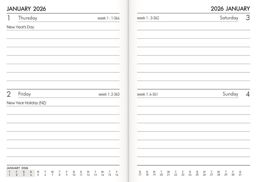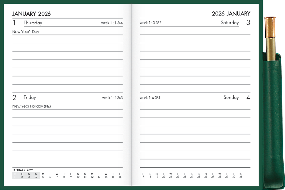 The 2026 Collins A72PP two days-per-page diary in red measures 105 x 74mm and comes with a pencil. PVC cover and is FSC certified.