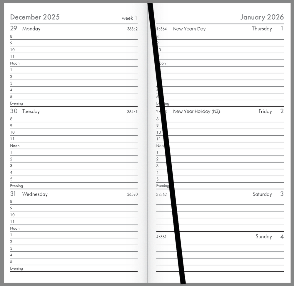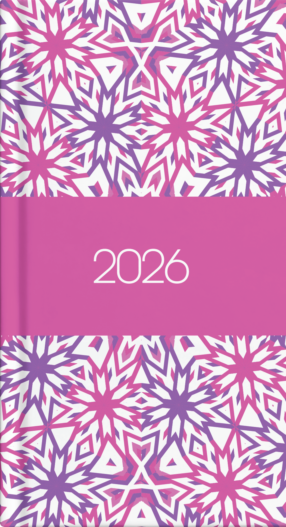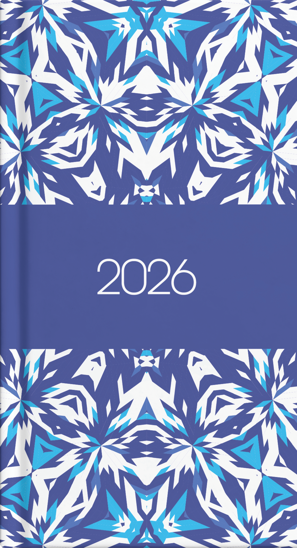 The 2026 Collins Slim week-to-view diary features a kaleidoscope design and measures 150 x 80mm. Diary binding is sewn and has a hard, printed cover with UV spot over gloss. This diary also includes a ribbon marker and is FSC certified. Please note as this is an assorted item, you will receive a randomly selected design/colour for online orders.