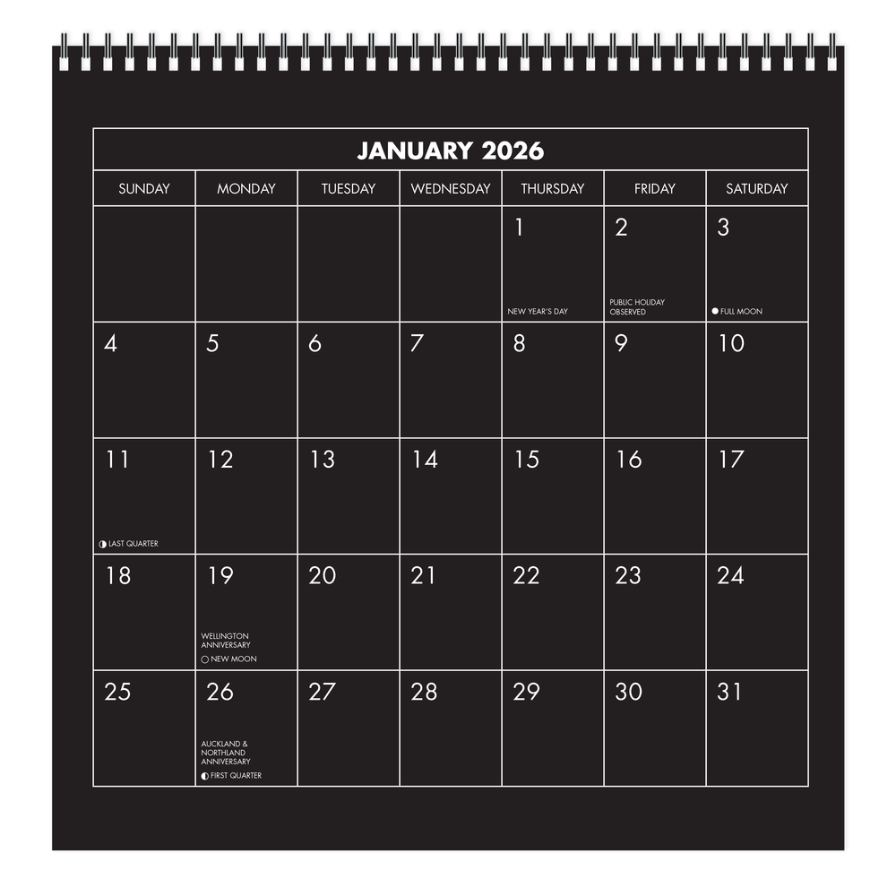2026 DIY Black Compact Calendar