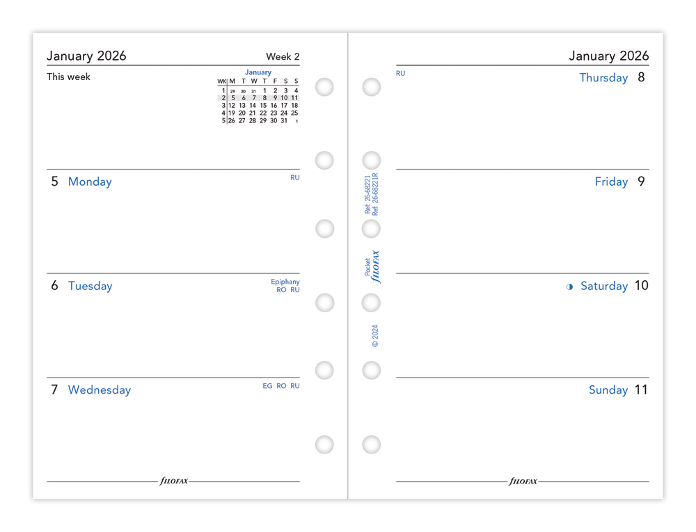 2026 Filofax Pocket Week-on-2-Pages Refill