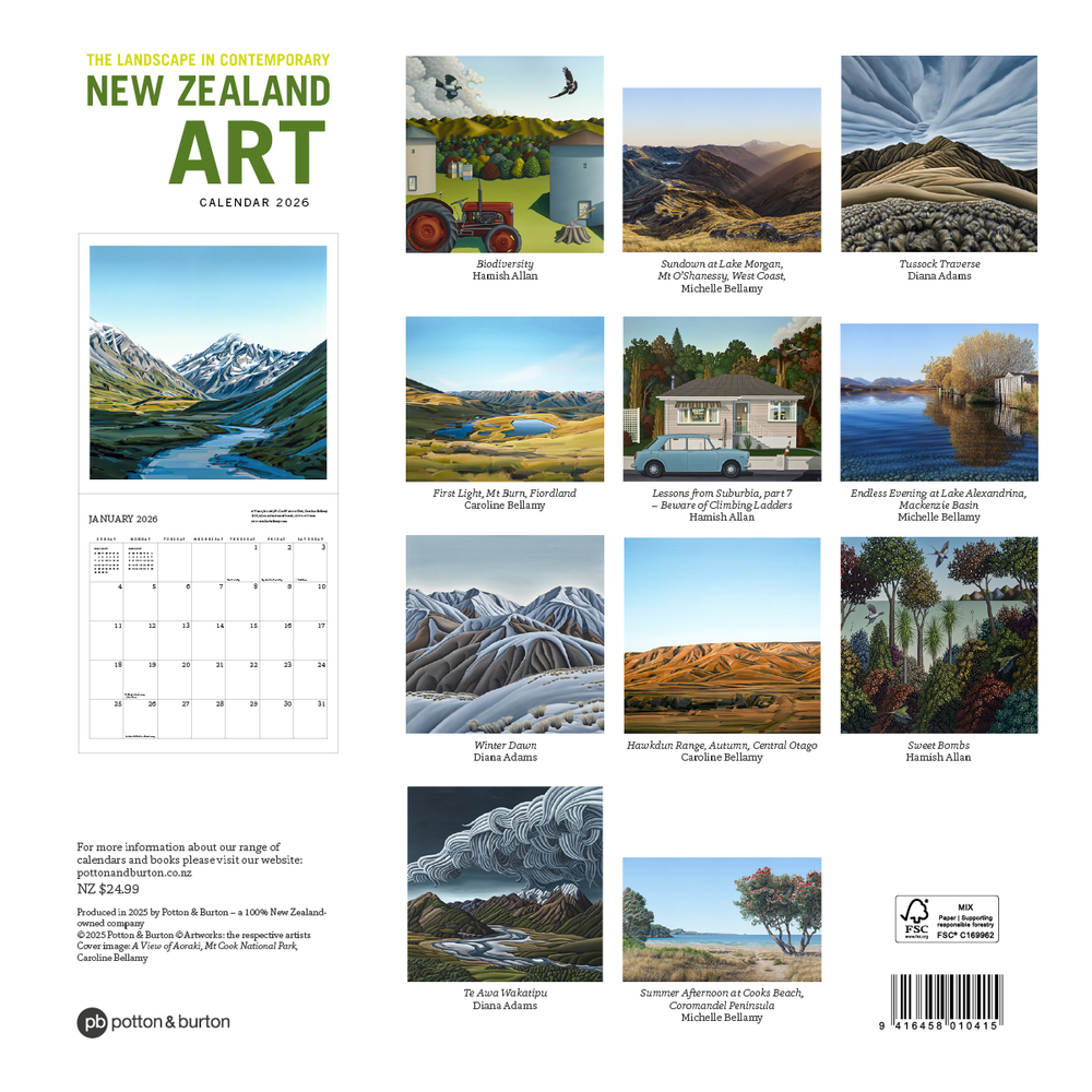 2026 Landscapes in Contemporary New Zealand Art Wall Calendar