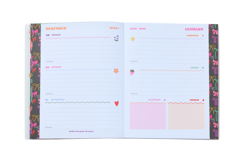 This 2026 fashionable diary has a front PVC cover with exclusive design in a week-to-view format. Diary includes New Zealand holidays in the contents section.