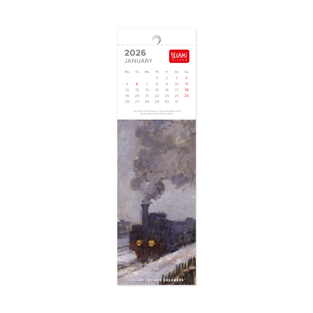 See the year through the eyes of the famous Impressionist with the Legami Claude Monet bookmark calendar 2026. Filled with gorgeous works of art, this annual calendar is perforated to give you 12 individual bookmarks for the whole year, helping you keep track of time when you're buried in a book. Some images in the calendar are details only and therefore do not represent the artworks in their entirety.