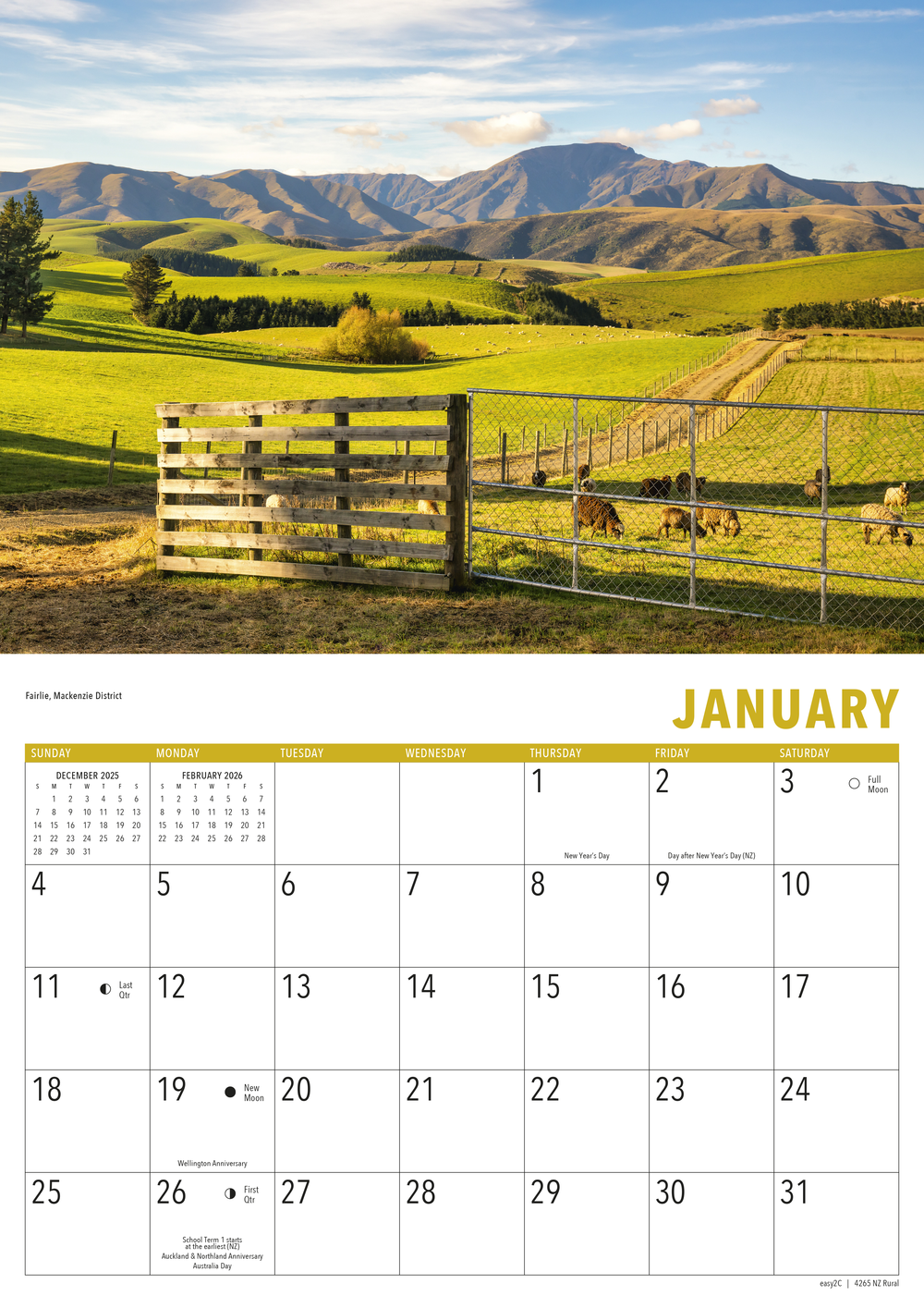 Bring a little bit of the New Zealand countryside into your home or office with this A4-sized 2026 booklet calendar. With a large date pad and ample room for notes, this calendar also features a year-at-a-glance 2027 calendar to help you plan out the year and beyond.