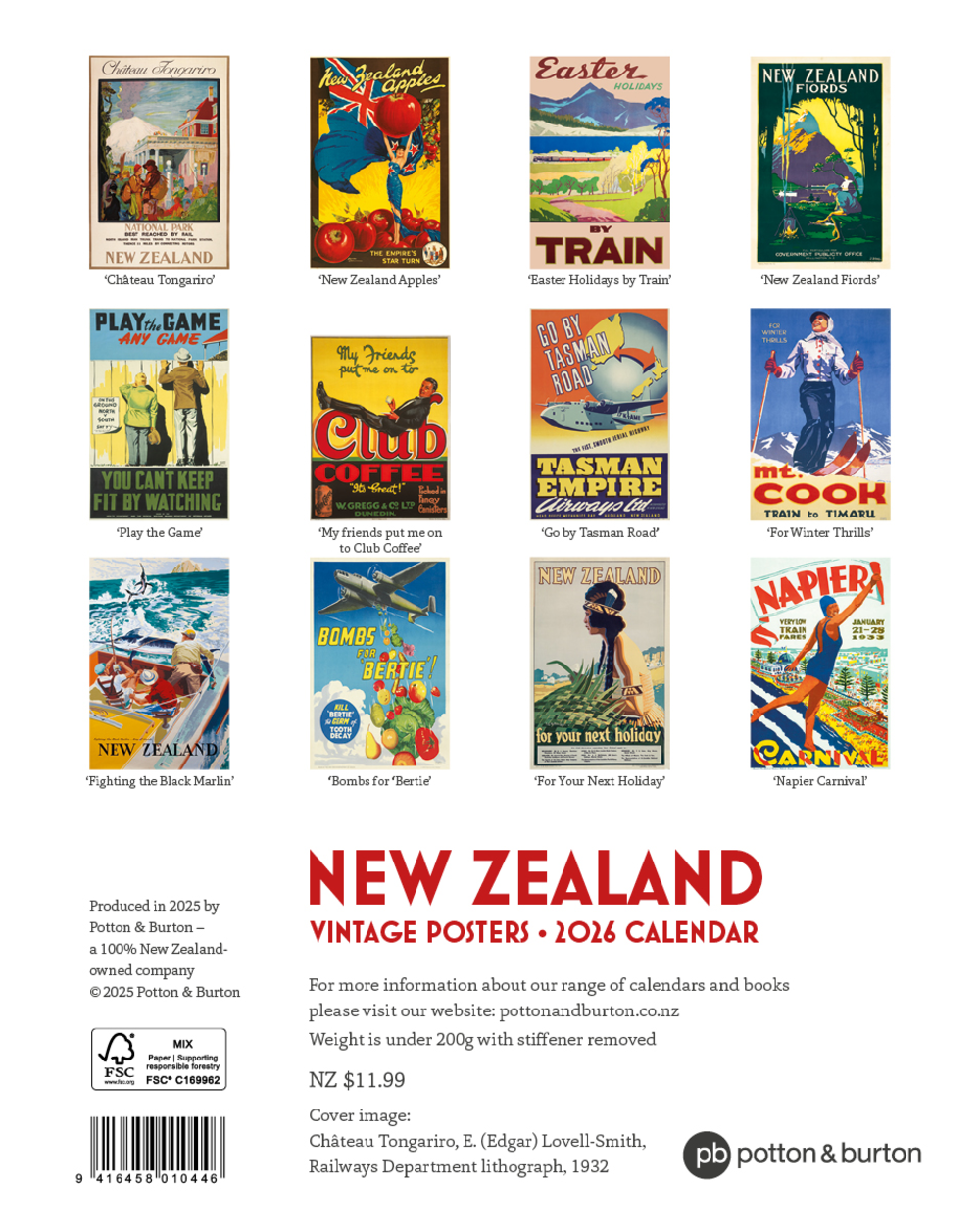 2026 New Zealand Vintage Posters Mini Wall Calendar