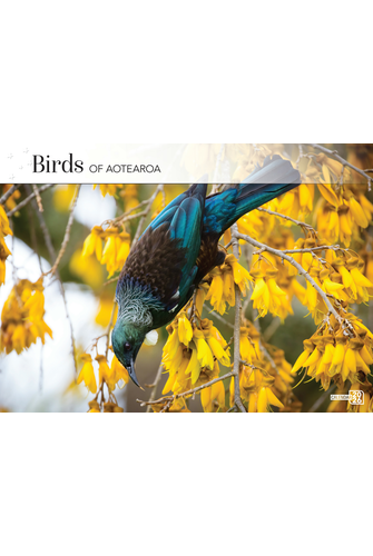 This 2026 wall calendar of birds of Aotearoa measures 355 x 242mm and includes New Zealand public holidays and school terms as well as moon phases. Calendar includes an envelope.