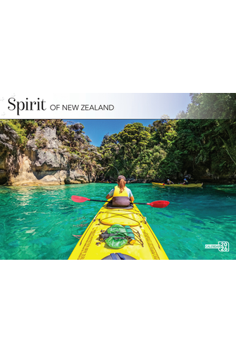 This 2026 wall calendar of Spirit of New Zealand measures 355 x 242mm and includes New Zealand public holidays and school terms as well as moon phases. Calendar includes an envelope.