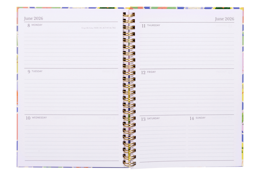The Cumberland Karella diaries offer an assortment of on-trend cover designs and are complemented by twin spiral binding. Diaries come in a week-to-view format. Please note as this is an assorted item, you will receive a randomly selected design/colour for online orders.
