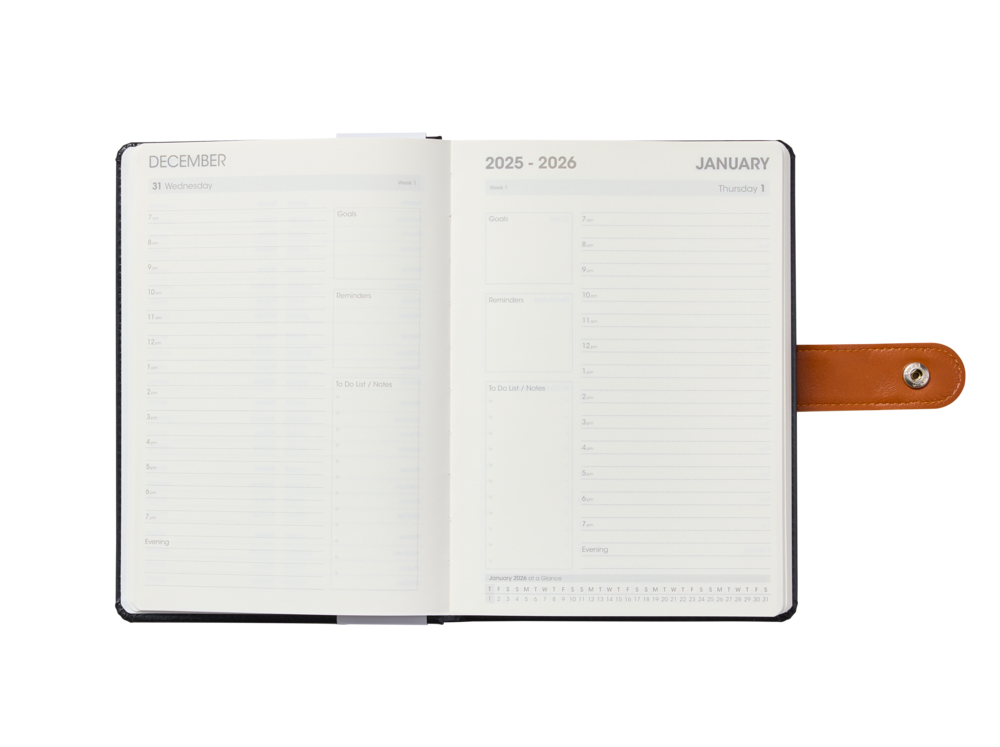 2026 Whitcoulls A5 Day-per-Page Black with Strap Diary