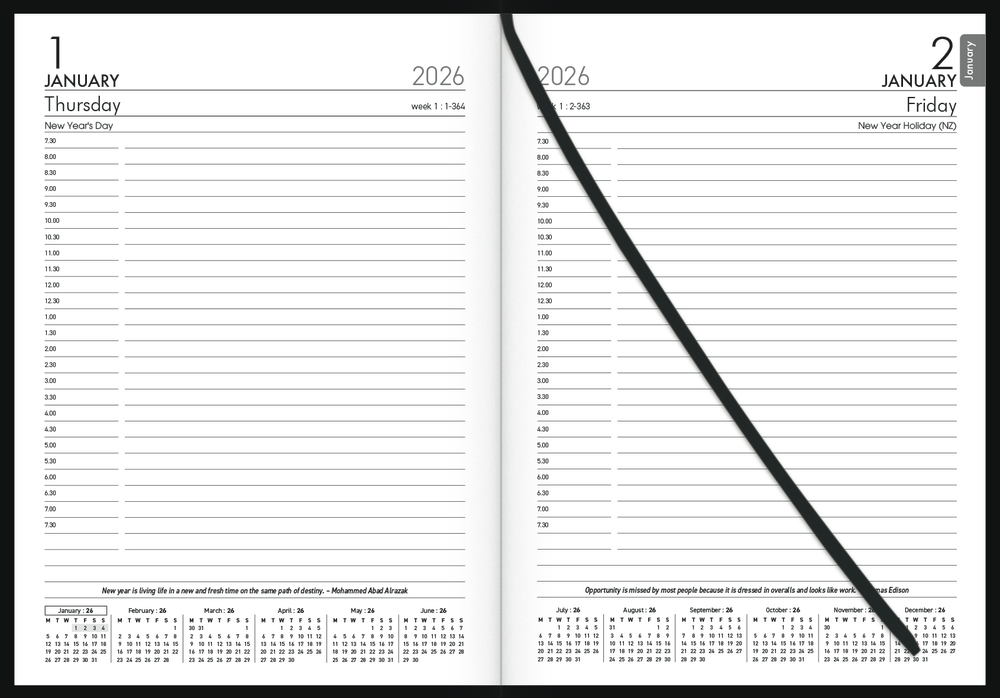 2026 Whitcoulls A51 Day-per-Page Black Diary