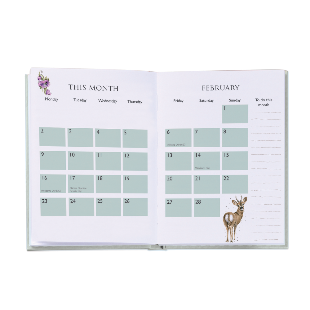 Designed for everyday use, this week-to-view diary planner features a clean, functional layout with full-colour illustrations throughout. Compact yet practical, it#s perfect for planning on the go. Inside, you'll find monthly overview pages, weekly planners, and dedicated to-do lists to help you stay on top of your schedule. Diary measures 110 mm x 153mm.