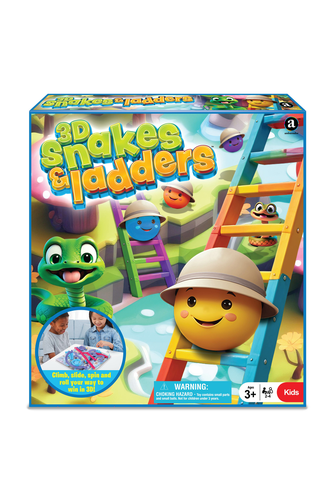 Enjoy hours of fun for the whole family with the 3D Snakes & Ladders Game - a thrilling 3D twist on the classic Snakes and Ladders game! Make your way along the 3D path that ascends and descends in unexpected ways - land on a ladder to move ahead, but be careful to avoid those sneaky snakes taking you back down the board! Roll the dice and climb, slide, lift, spin, roll and wiggle your ball throughout the obstacles and be the first to reach the end to win the game! Features curvy slides, shifting ladders and a whirling spinner to propel your ball around the board. This stimulating game offers an enjoyable way for children to learn to count, strategise and strengthen social interactions.- Ages 3+