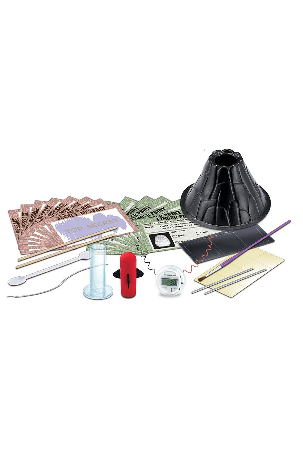 Perform amazing experiments with everyday materials found around your kitchen - a fun kit filled with inspiration! The kit contains 6 specially designed kitchen science experiments. You can generate electricity by using a fork and a lemon to light up a bulb, launch a rocket fuelled by baking soda and vinegar and build a table top volcano which erupts with bubbly "lava". This fun kit contains: Vinegar Rocket, launcher pad, small spoon, volcano blister, 2 skewers, finger print black sheet, 8 finger print record sheets, brush, 8 secret message sheet, 2 zinc plates, wire, LCD watch and detailed instructions with science explanations and fun facts. Materials required from home kitchen: vinegar, baking soda, red food colouring, washing up liquid, measuring cup, sugar, cloth pegs, teaspoon, forks, corn starch, black currant/grape juice concentrate, lemon.