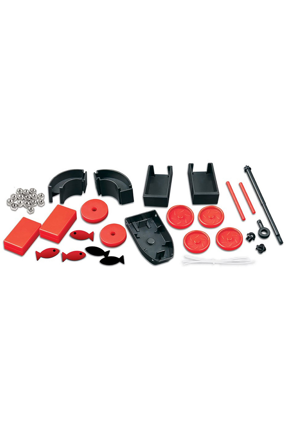 The great KidzLabs kit contains a super magnet set that can be transformed to perform 10 fun experiments and games! Make a super power horse shoe magnet or a magnet wand. So many great ways to experiment safely with magnets! This fun kit contains: 2 super power bar magnets, 2 ring magnets, 1 set magnet handle (can be assembled into magnet wand or U shaped magnet), 1 car/boat chassis, 4 wheels, 1 long axle, 1 short axle, 1 rod for fishing wand/yacht mast, 1 fishing wand joint, 2 ring magnet joints, 5 magnetic fish, 15 metal screw nuts, 1 roll of thread, detailed assembly and game instructions with fun facts and principles of magnetism.