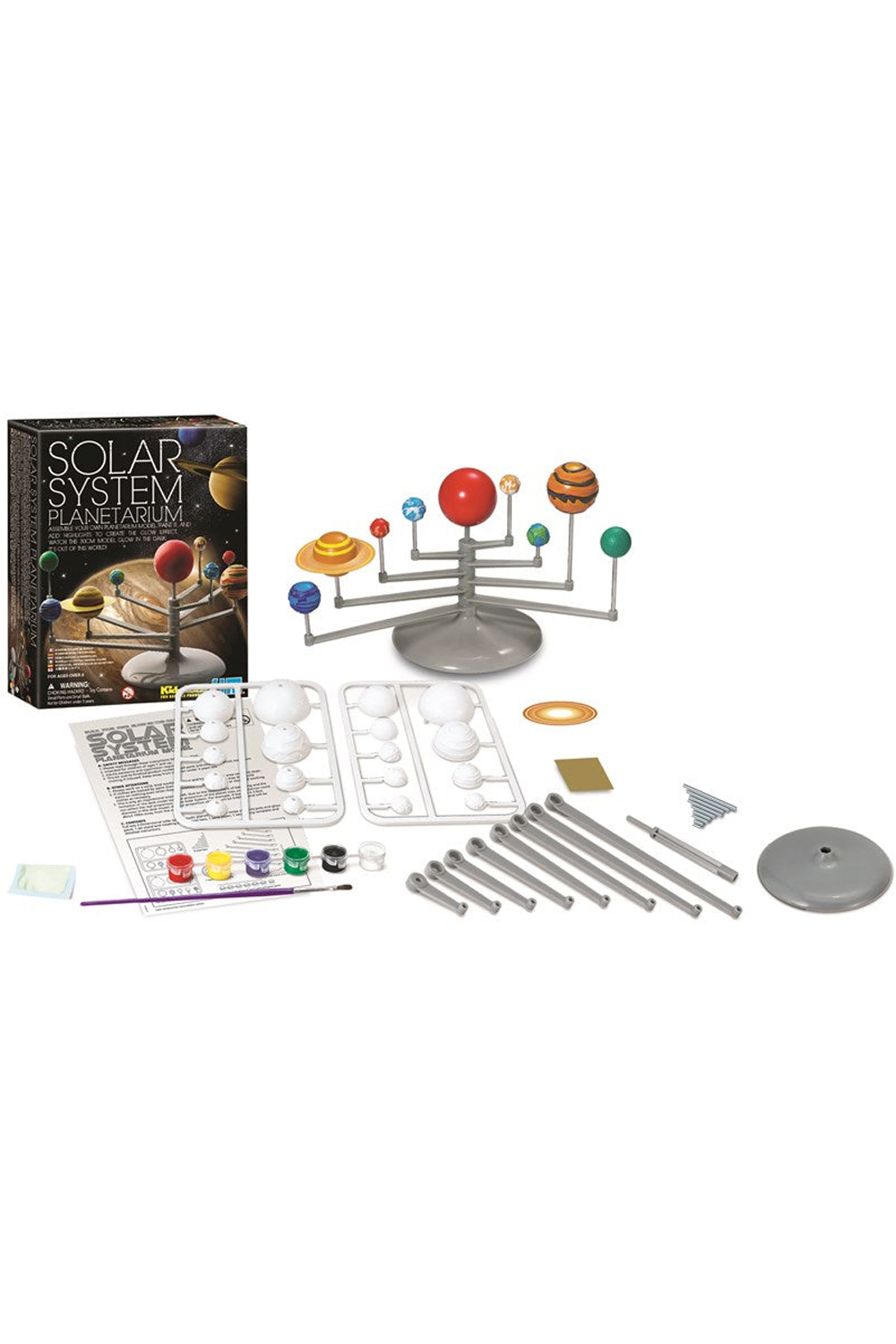 - Contents: planetarium model, brush, strip of paint pots, glow paint, stand and rotating arms, 9 steel bars, sand paper