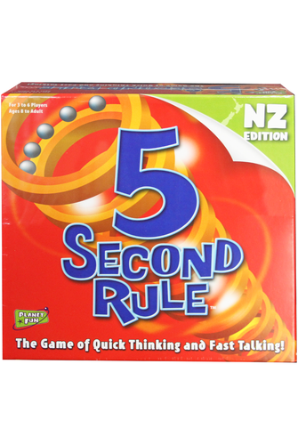 Test your brain with this fast paced game. Each player has five seconds to name three things listed on their playing card. Will you beat the clock? This edition features all new questions with general and NZ themes. Time is not on your side with the 5 Second Rule board game! It should be easy to name 3 towns in NZ starting with T - but can you do it under the pressure of 5 seconds? Fast, addictive fun!