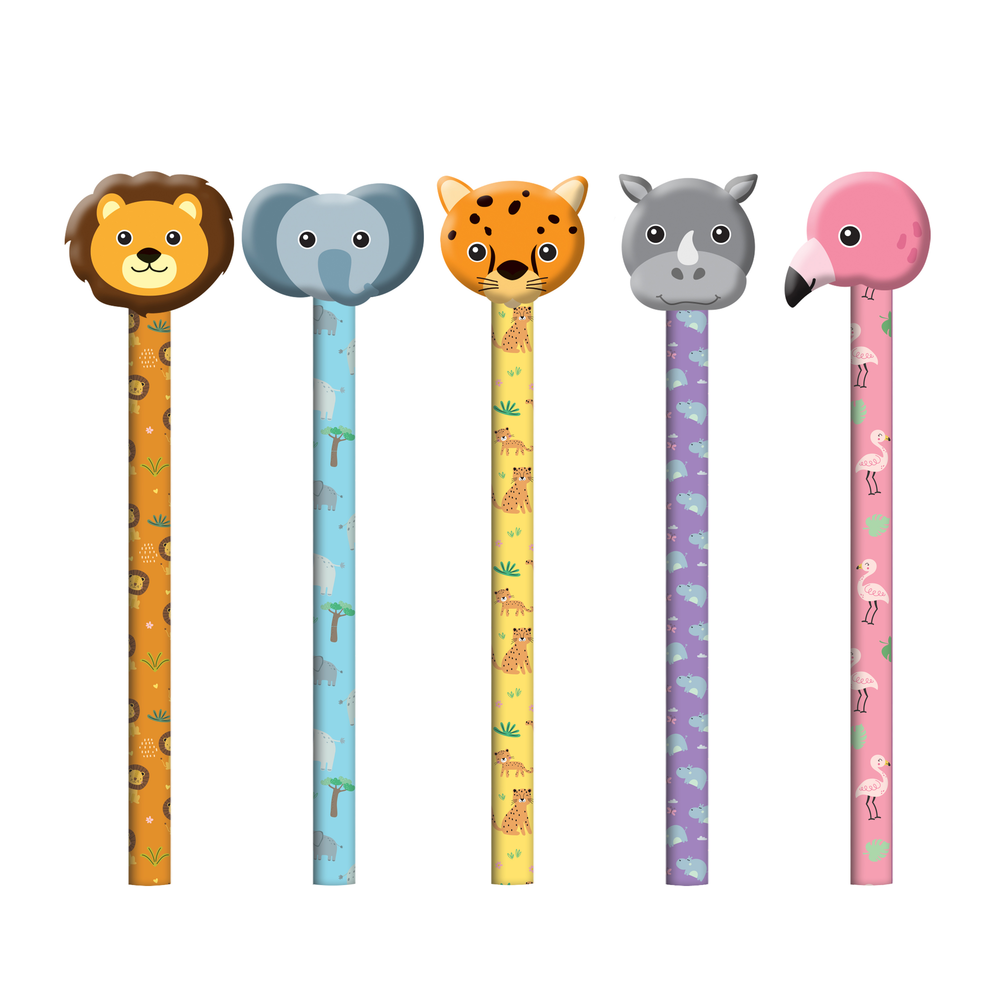 Get ready for unlimited fun of wild African adventure! This five-pencil set is packed full of colouring pages and awesome activities featuring magnificent lions, graceful giraffes, giant elephants, and many more. The cute erasers also make great keepsakes to let kids' creativity soar as they explore the wonder of Africa one animal at a time.