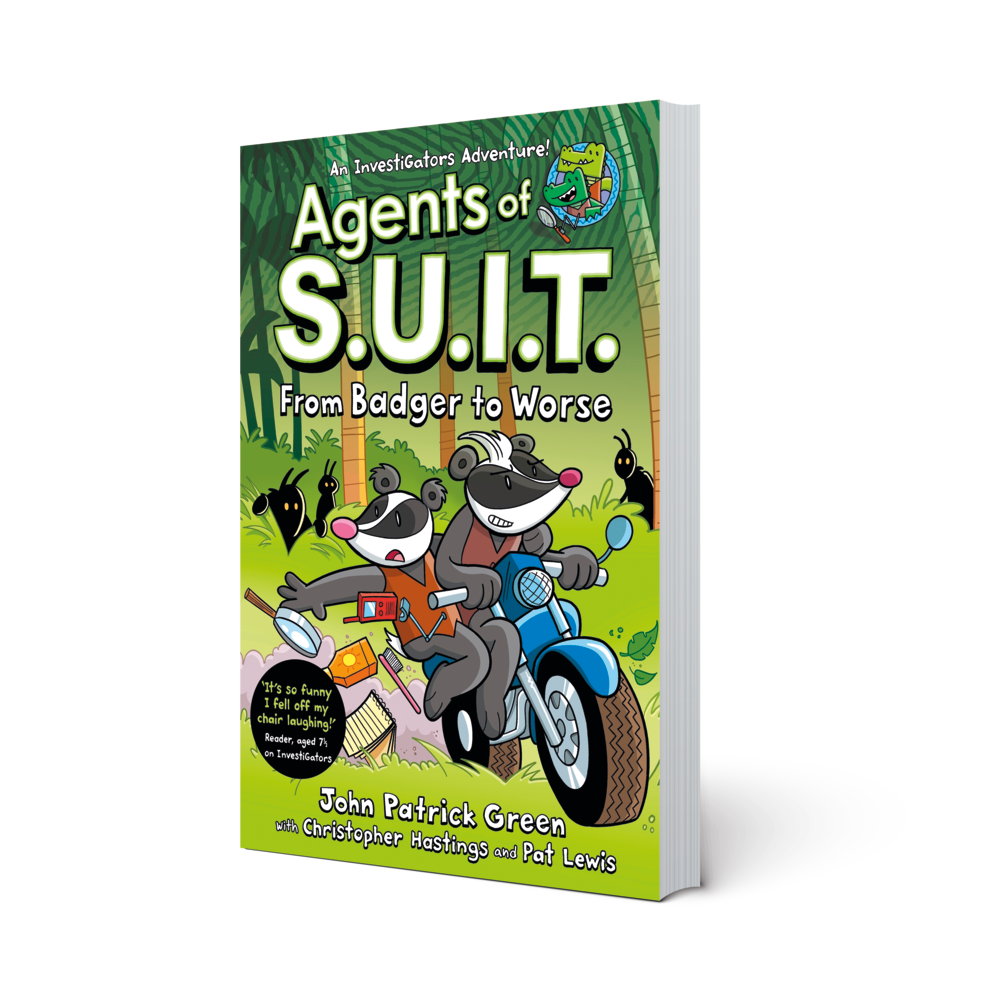 From John Patrick Green, the creator of the side-splitting InvestiGators series, comes Agents of S.U.I.T.: From Badger to Worse - the second in a full colour, laugh-out-loud graphic novel series perfect for fans of Bunny vs Monkey! Bongo and Marsha, the super-spy Badgers, are on the case... and way over-budget! When S.U.I.T.* realizes just how much money the Badgers waste with their gadgets, spy vehicles and custom toys, they're sent to Bora Bora to investigate a case... the old-fashioned way. The bees - that's 'bee-ee-ee' like the insect - who run the resort are hiding something under the tropical sands, and Marsha and Bongo are just the bumbling agents to crack this pineapple-flavored case wide open. It's time for the B-Team to show why they're so un-B lievably B-loved! Created by John Patrick Green with cowriter Christopher Hastings and artist Pat Lewis, join the Bongo and Marsha in this hilarious adventure! *Special Undercover Investigation Teams