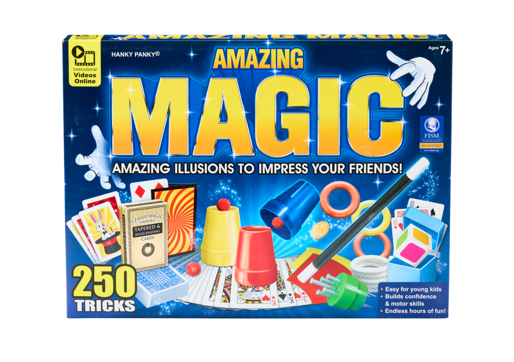 Simply incredible magic can be mastered in minutes! Perform dazzling card routines. Make coins multiply and even appear from nowhere! Objects can disappear in your 'bare hands' and then reappear or even transform. Includes timeless tricks like cups & balls... And much, much more! Builds confidence and motor skills. Easy to follow instruction book. Tutorial videos available online.
