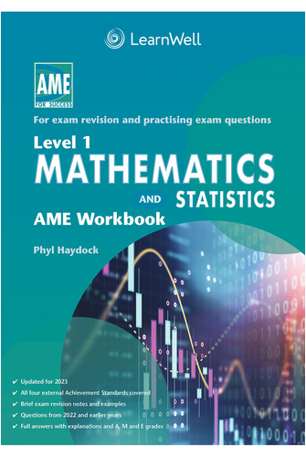 It covers four external Mathematics and Statistics Achievement Standards: 1.2 Apply algebraic procedures in solving problems 1.3 Investigate relationships between tables, equations and graphs 1.6 Apply geometric reasoning in solving problems 1.12 Demonstrate understanding of chance and data This workbook has brief exam revision notes for end-of-year study, with examples and NCEA exam questions from 2022 and earlier years. Full answers with explanations and A, M, and E grades are given. Use this workbook all year round or during Terms 3 and 4 to revise and practise exam questions.