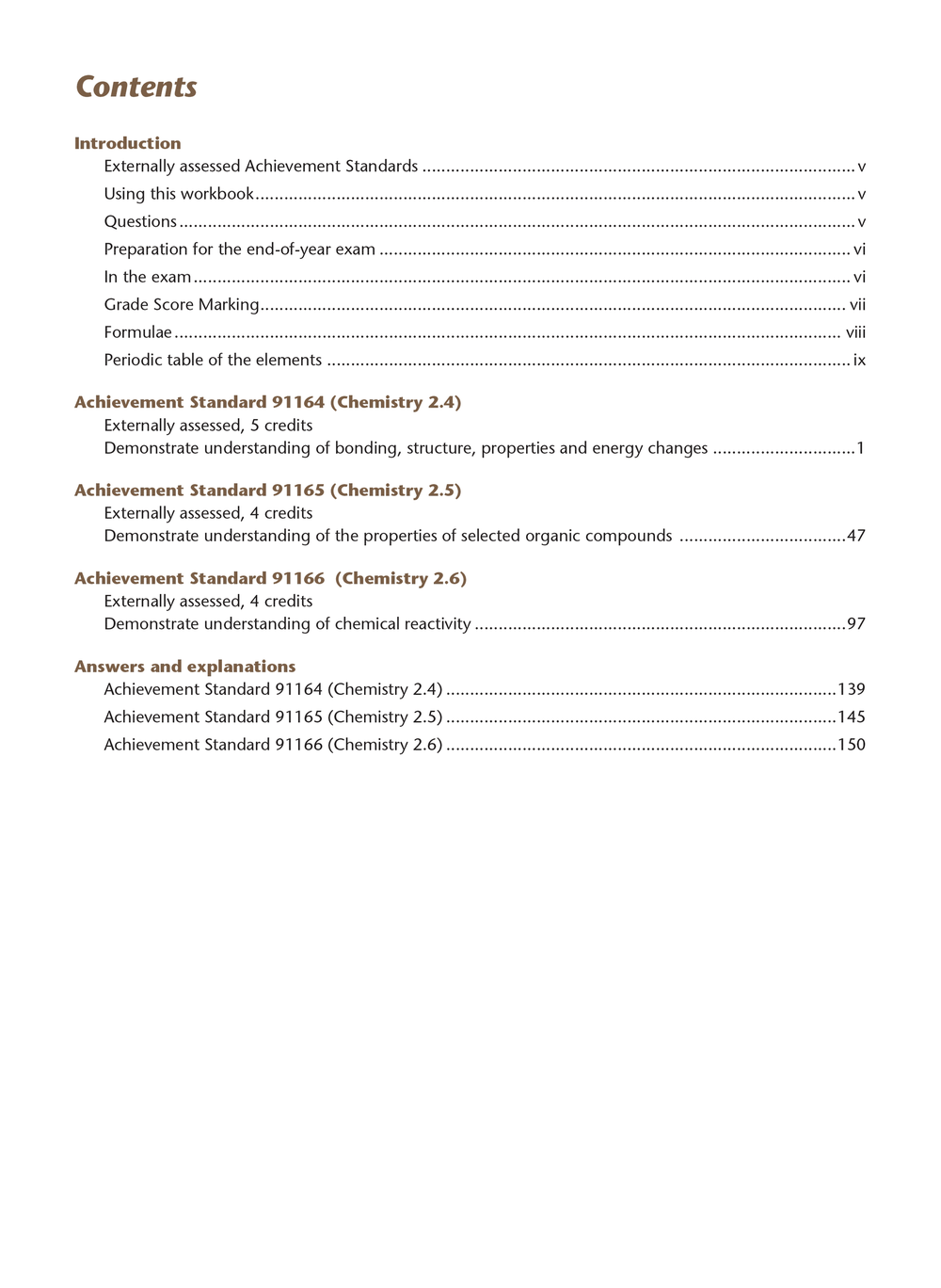 It covers the three external Achievement Standards: Chemistry 2.4 Demonstrate understanding of bonding, structure, properties and energy changes Chemistry 2.5 Demonstrate understanding of the properties of selected organic compounds. Chemistry 2.6 Demonstrate understanding of chemical reactivity This workbook has brief exam revision notes for end-of-year study, with examples and NCEA exam questions from 2022 and earlier years. Full answers with explanations and A, M, and E grades are given. Use this workbook all year round or during Terms 3 and 4 to revise and practise exam questions.