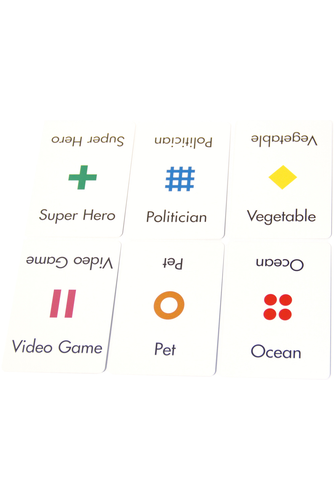 Anomia plays off the fact that our minds are positively brimming with all sorts of random information; things to eat, pop songs, websites, etc. Sure, under normal circumstances, it's easy enough to give an example of a frozen food, or a dog breed; but you will find that your brain works a little differently under pressure! The directions are simple. Draw a card from the center pile and flip it over. Does the symbol on your card match one on another player's card? If so, you must quickly face-off with the other player by giving an example of the person, place, or thing on their card before they can do the same for yours. If you blurt a correct answer out first, you win their card and drawing continues. Sounds simple, right? Wrong. Wild cards allow unlike symbols to match, increasing the number of things you must pay attention to. Cascading face-offs can occur when you hand over a lost card revealing a new top card on your play pile. All this adds up to a high-energy, hilarious play experience where everyone is involved at all times. Easy to learn, fun to play over and over again, Anomia will have any group of friends, family, even perfect strangers, shouting and laughing out loud as they try to beat each other to the punch!