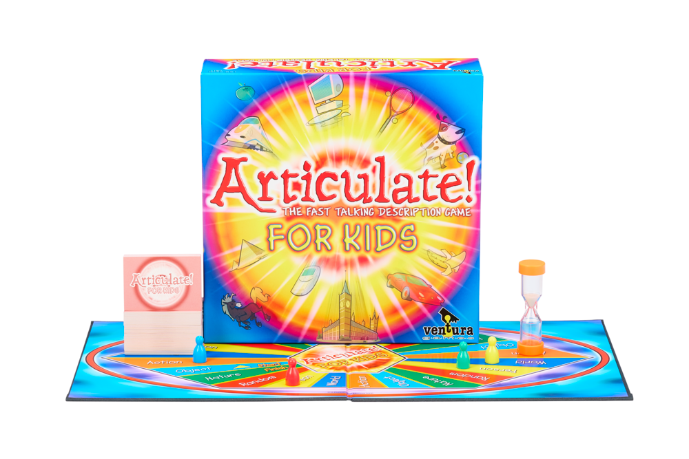 Articulate for Kids is the same fast-moving, lively, gripping fun as the adult version. Played in teams, the idea is to describe as many card entries as possible to your team mates in 30 seconds without giving "begins with" or "sounds like" clues. Compiled by an educational specialist, the game has 336 cards with over 2000 entries in the same six categories as the original Articulate. Complete with its own board, it can be played alone or along with Articulate.