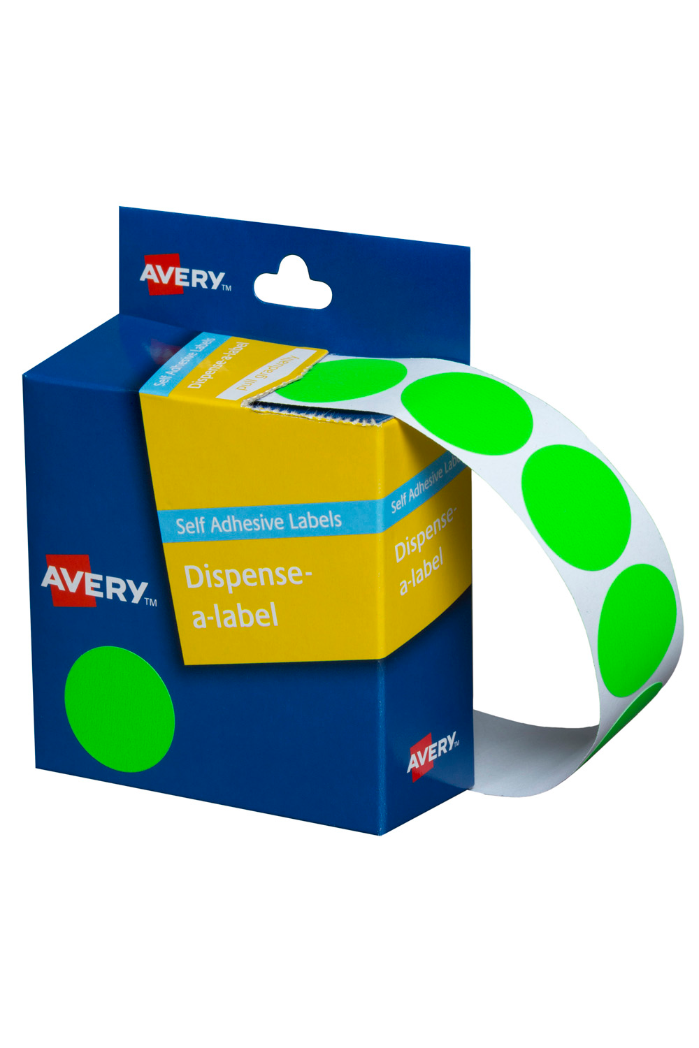 Avery Circle Labels in easy to use dispenser are perfect for marking, arranging, organising, scheduling and planning in the home or office. With the variety of sizes and colours available, they provide a clear and simple overview of tasks and plans in an instant. They come in a compact label dispenser that can easily be kept neatly in a drawer. You just need to peel off one label at a time so there's no wastage. These removable fluoro green circle labels are 24mm diameter in a pack size of 350 labels, ideal for everyday use.