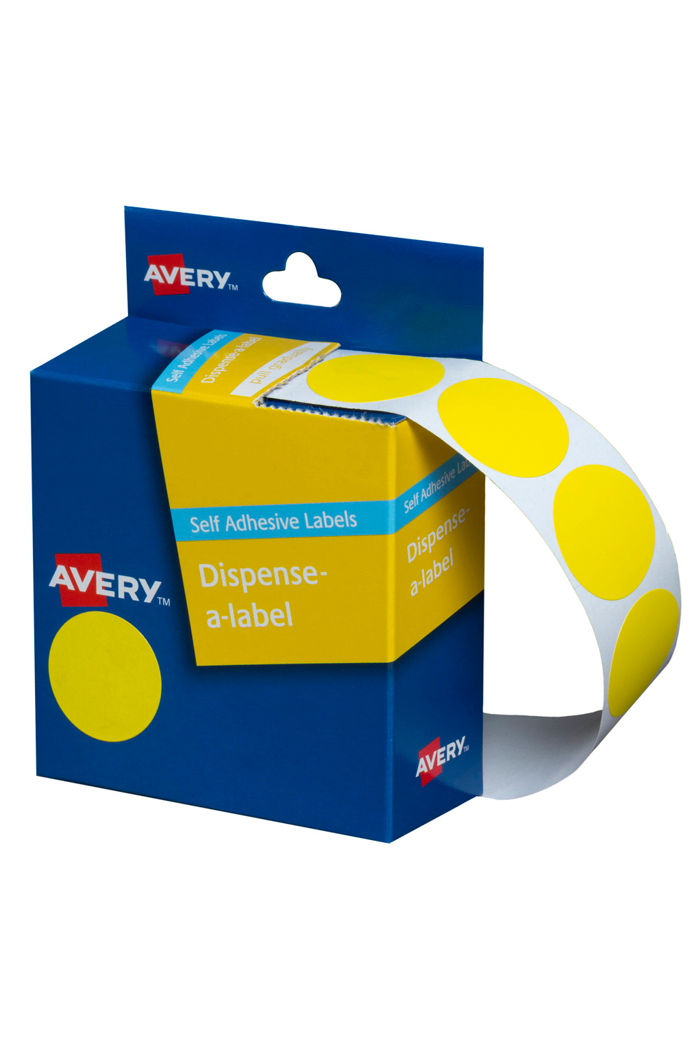 Avery Circle Labels in easy to use dispenser are perfect for marking, arranging, organising, scheduling and planning in the home or office. With the variety of sizes and colours available, they provide a clear and simple overview of tasks and plans in an instant. They come in a compact label dispenser that can easily be kept neatly in a drawer. You just need to peel off one label at a time so there's no wastage. These removable yellow circle labels are 24mm diameter in a pack size of 500 labels, ideal for everyday use.