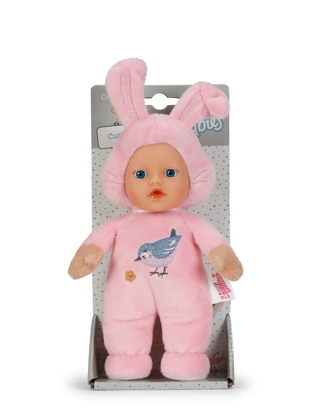 With their adorable animal themed onesies, BABY born for babies Cutie are the sweetest little dolls, designed especially for babies. In three styles that you can gift, for babies Cutie come in either a light pink bunny design, a little brown bear design and a cream bunny design, each with fluffy animal ears and cute button tails! There's a lovely decorative graphic on each of their tummies and their super-soft bodies are great for cuddles all day long with crinkly paper enclosed inside for early sensory exploration. In case of any spills or dribbles, Cutie dolls can be washed at 30 degrees and come with minimal stitching so outfits cannot be removed. Comes in three assorted styles, each sold separately.