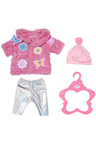 For expressing your style on cooler days, this fabulously fun pink fluffy jacket with appliques comes with shiny metallic leggings and a matching beanie hat with glittery dots, giving every day a little more sparkle! Easy to use, even for little fingers. Your child will adore playing dress up and getting BABY born ready for fashion shows, fun adventures, or parties. Perfect for enhanced, diverse and long-lasting fun through play. Fluffy pink coat with butterfly and flower appliques with metallic silver leggings and matching beanie hat with pom pom. This look is a favourite for BABY born Sister Carla for playing in the snow in the BABY born animated series, now available to watch on YouTube! To fit dolls up to 43cm (not included). Suitable for children aged three and above.- Ages 3+