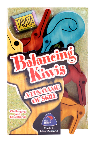 Balancing Kiwis is a fun game of skill for adults & children, that has literally hundreds of balancing possibilities. Hand made from Farm Forested Timber, and presented in coloured finishes. This is a great gift from New Zealand. A puzzle with hundreds of solutions. This beautiful wooden puzzle will challenge your skills, and patience as you try to balance the Kiwis. There are countless ways it can be done - you just need a flat surface and to hold your tongue in the right place.