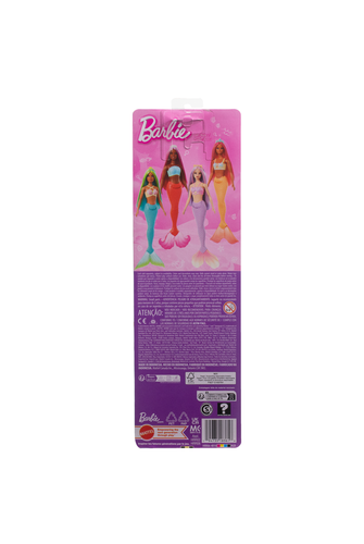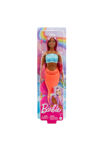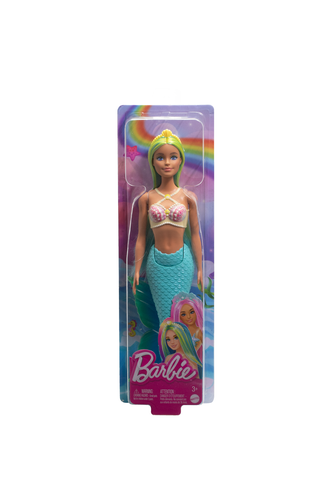 Kids will love dreaming up magical undersea tales with their beautiful Barbie mermaid dolls! Each mermaid has a shell-inspired bodice, sculpted tail, and fantasy-colored hair adorned with detailed accessories. Kids 3 years old and up can collect a variety of mermaids and go on aquatic adventures! Each sold separately, subject to availability. Barbie dolls cannot swim or stand alone. Colours and decorations may vary.- Ages 3+