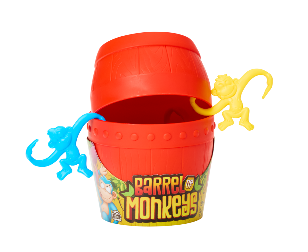 What's more fun than a barrel of monkeys? This beloved Barrel of Monkeys game has a modern, redesigned look with all of the classic charm of the original game. Dig into the barrel to pick up a monkey and try to link as many monkeys as you can without dropping them. Featuring a new monkey facial expressions and colours, with all of the classic charm of the original game. Whoever collects the most monkeys in one turn, wins!