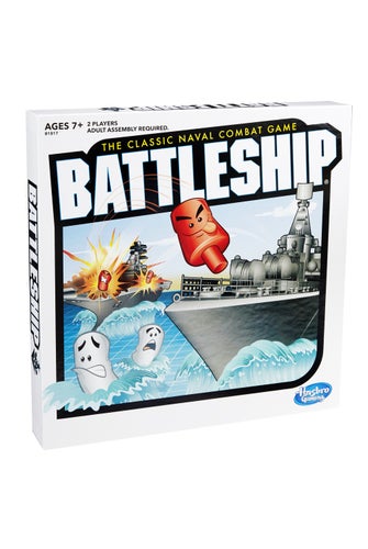 Hunt, sink, and win with this brilliant Battleship game! Can you sink your opponent's ships before all of yours go down? Command your battle and deploy your 4 ships on the ocean grid. The vertical target grid keeps you from seeing each other's deployment! Keep "firing" and record your strikes with the red pegs. Use the white pegs to keep track of your misses so you don't waste any shots. If you use logic and take some chances, you'll sink your opponent's battleship - but do it fast, because they'll be trying to do the same to you! Packaging may vary.- Ages 7+