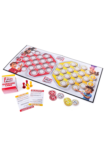 Go head-to-head in this fun-filled family trivia game! Prove who's the boss in the game where the adults answer questions about kid's stuff, and the kids answer questions their parents really should know. But watch out for the wild cards, they could you sliding back to the start or skipping ahead to the finish. Whoever crosses the board first with both their mover pieces wins the game! Packaging may vary.