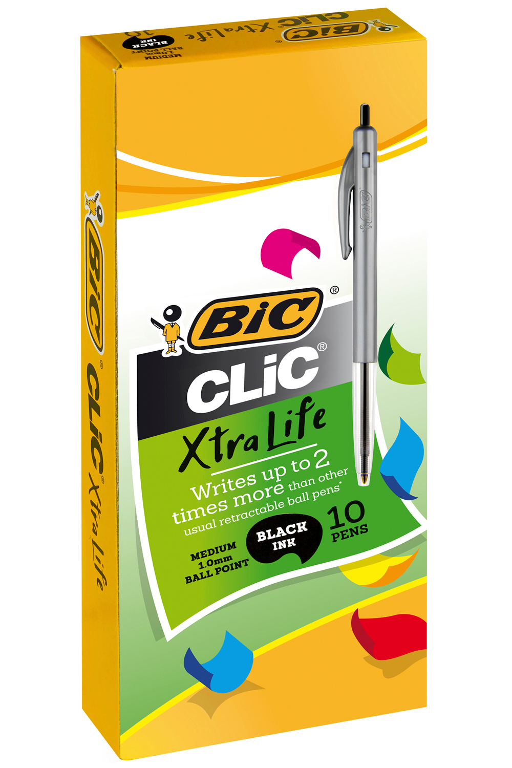The BIC Clic Ball Pen is a traditional favourite with it's transparent barrel that allows you to see the ink supply, ridged barrel for better writing control and retractable switch and point. Pen has a medium 1.0mm nib. Available in a box of 10.