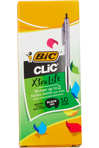 The BIC Clic Ball Pen is a traditional favourite with it's transparent barrel that allows you to see the ink supply, ridged barrel for better writing control and retractable switch and point. Pen has a medium 1.0mm nib. Available in a box of 10.