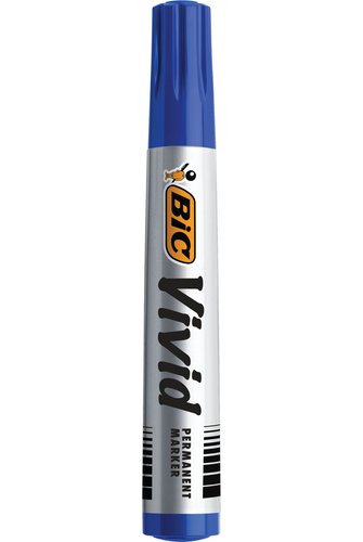 The BIC blue vivid marker is a permanent marker with a 1.7mm bullet tip. The black ink is low alcohol based and writes permanently on most surfaces, can withstand water and dries instantly. Ideal for use at home, outdoors or in the workplace.
