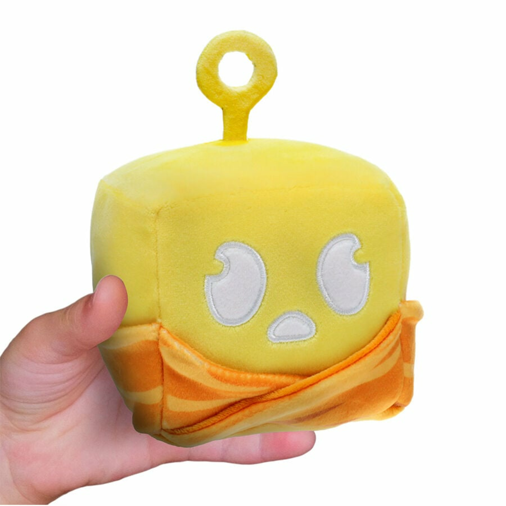 It's the 4" (10cm) Collectible Plush, from the hit game Blox Fruits! Collect all your favourite magical fruits! Each plush features high-quality fabric, detailed embroidery, and is 4" tall (10cm). Includes DLC Code to redeem for in-game benefits. Always remember, with Blox Fruits you are what you eat!